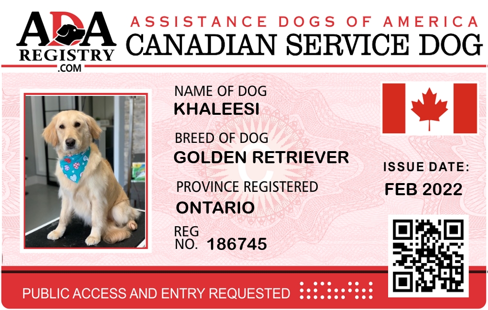 Service Dog Registration for Khaleesi