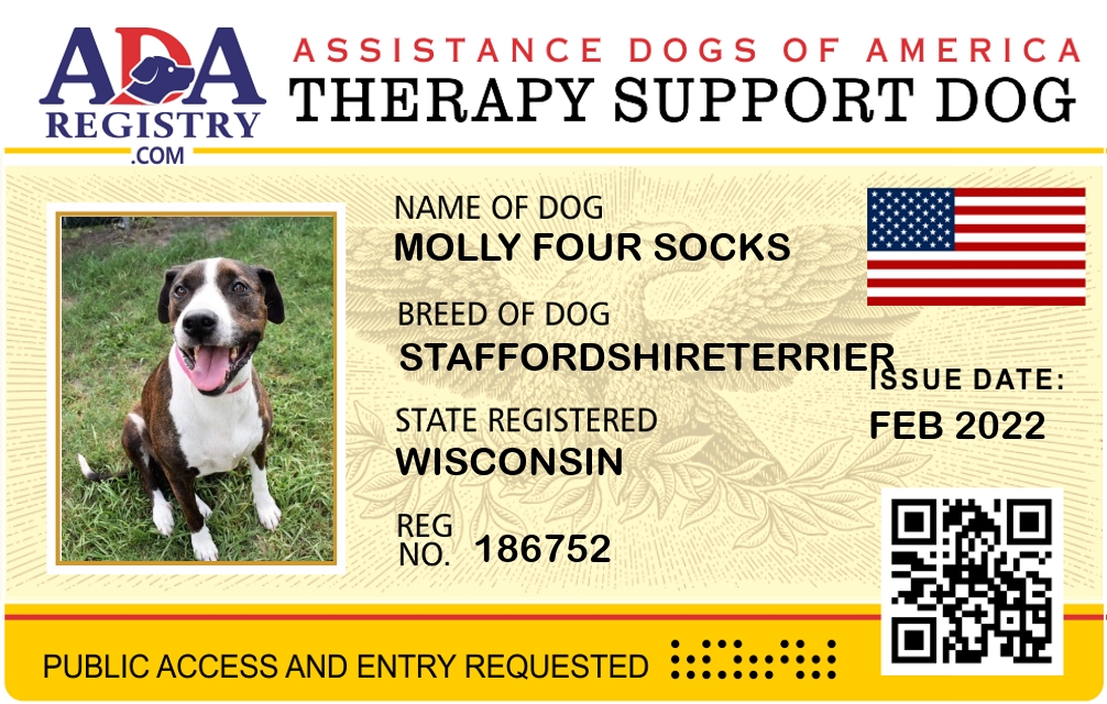 Therapy Dog Registration for Molly Four Socks