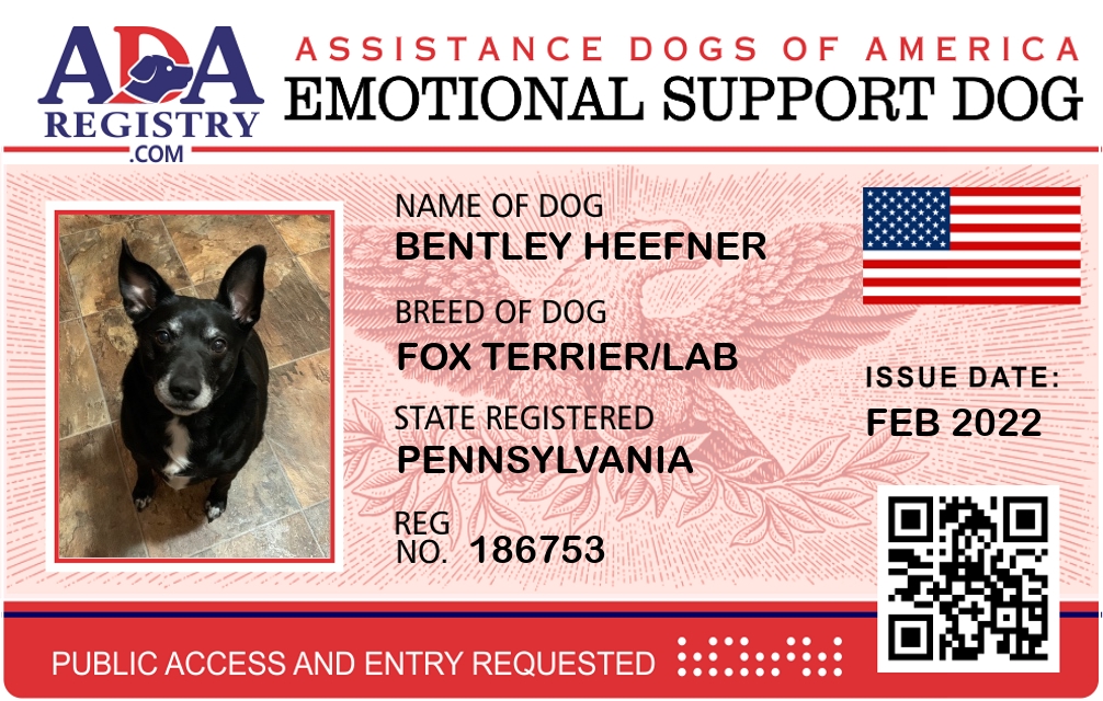 Emotional Support Dog Registration for Bentley Heefner
