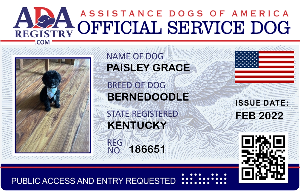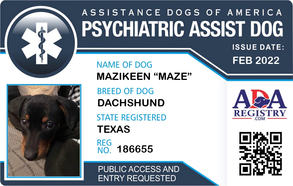 Psychiatric Service Dog Registration for Mazikeen “Maze”