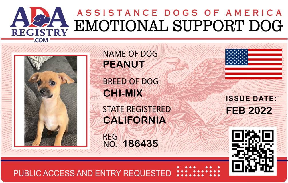 Emotional Support Dog Registration for Peanut