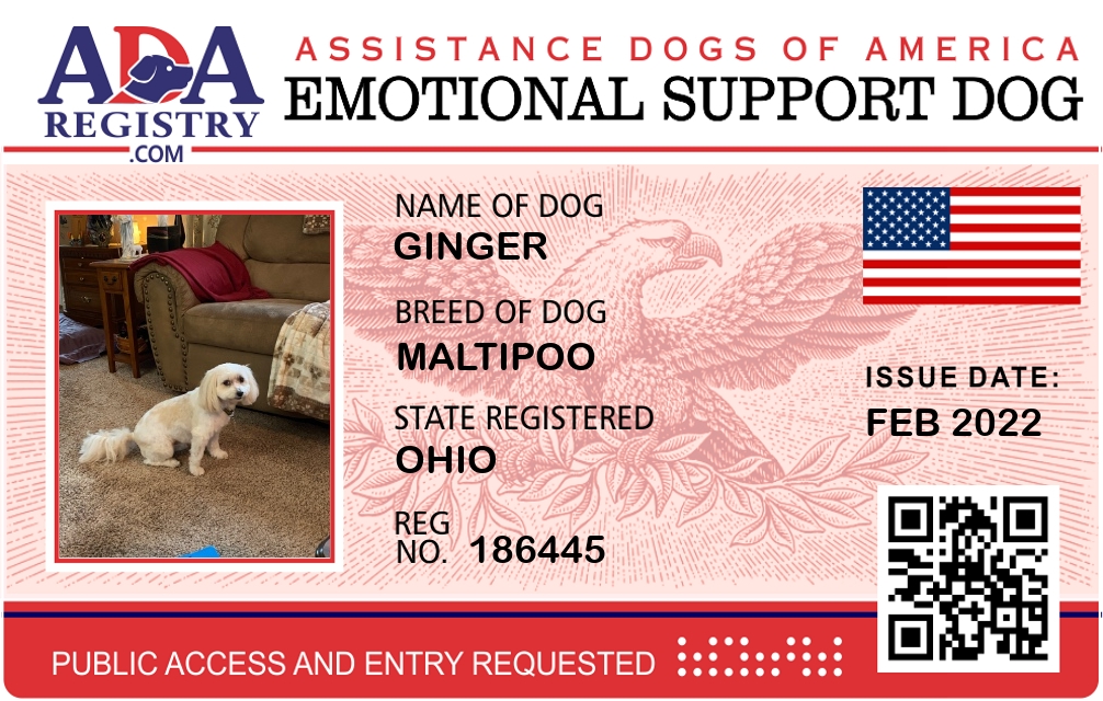 Emotional Support Dog Registration for Ginger