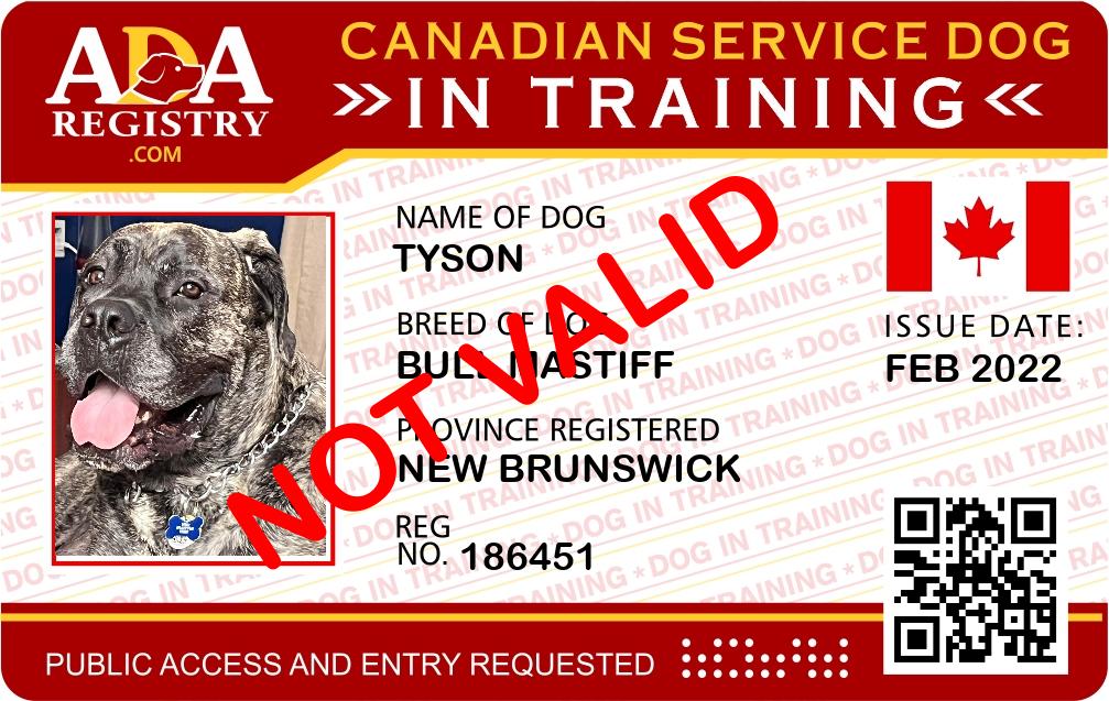 Service Dog In Training Registration for Tyson