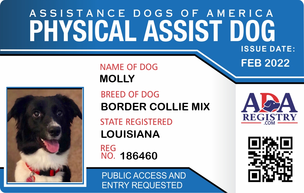 Physical Assistance Dog Registration for Molly