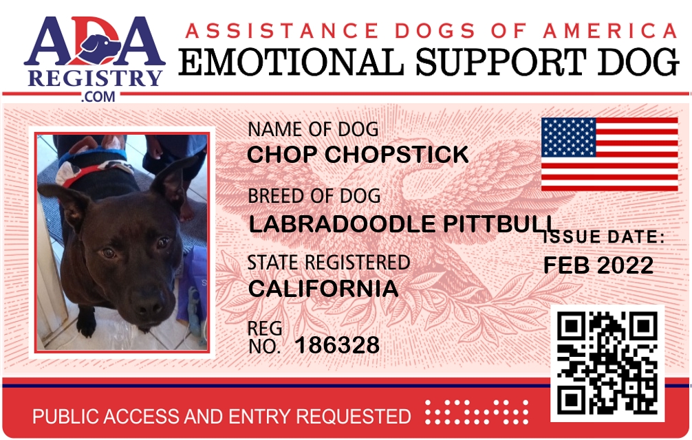 Emotional Support Dog Registration for Chop Chopstick