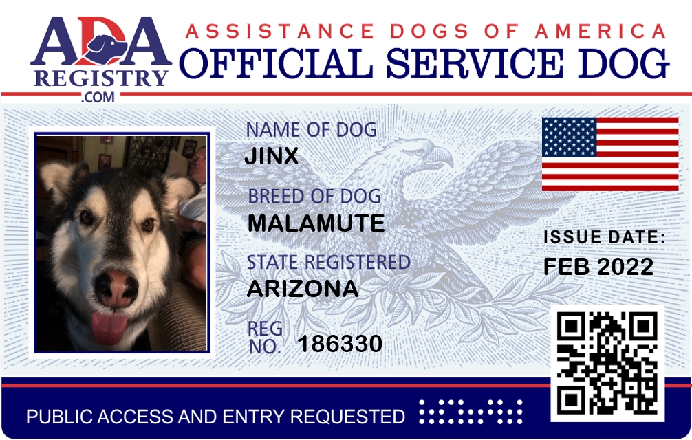 Service Dog Registration for Jinx