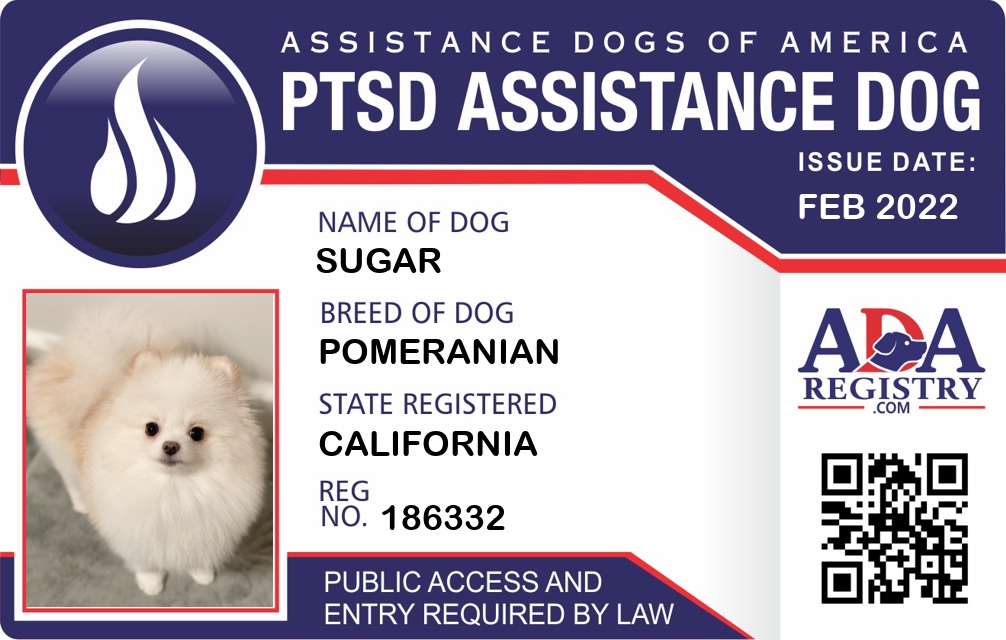 PTSD Assistance Dog Registration for Sugar