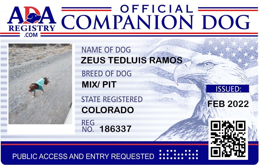 Companion Dog Registration for Zeus Tedluis Ramos