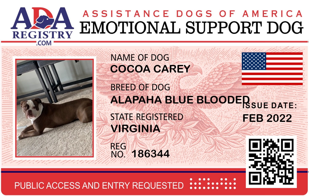 Emotional Support Dog Registration for Cocoa Carey