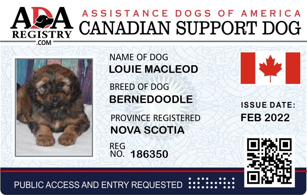 Emotional Support Dog Registration for Louie MacLeod