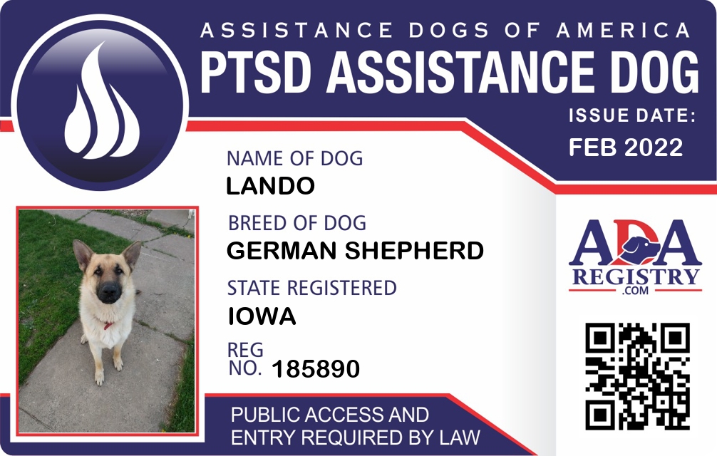 PTSD Assistance Dog Registration for Lando