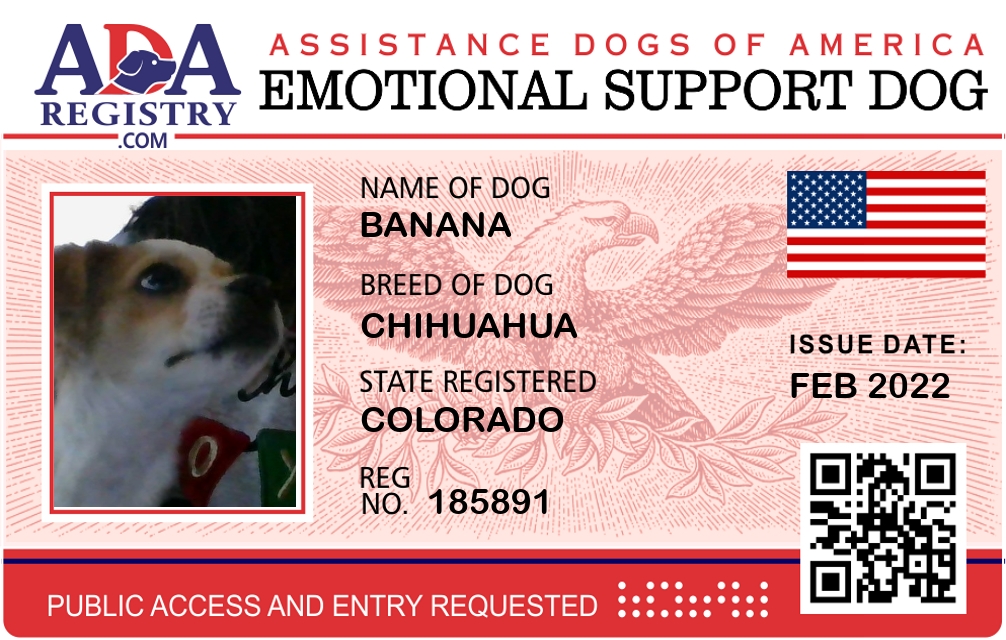 Emotional Support Dog Registration for Banana