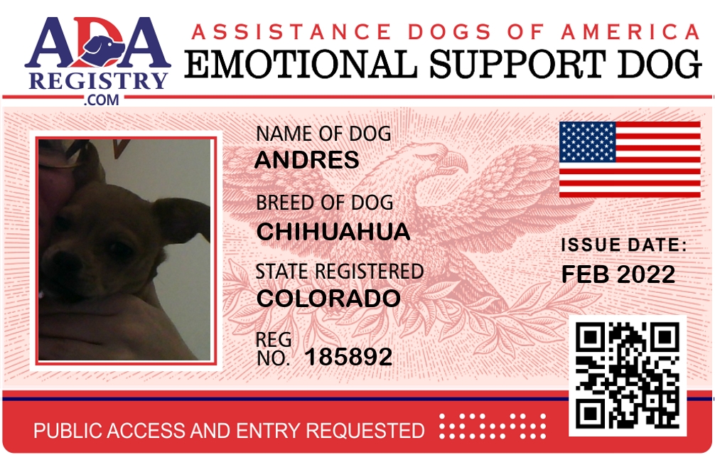 Emotional Support Dog Registration for Andres