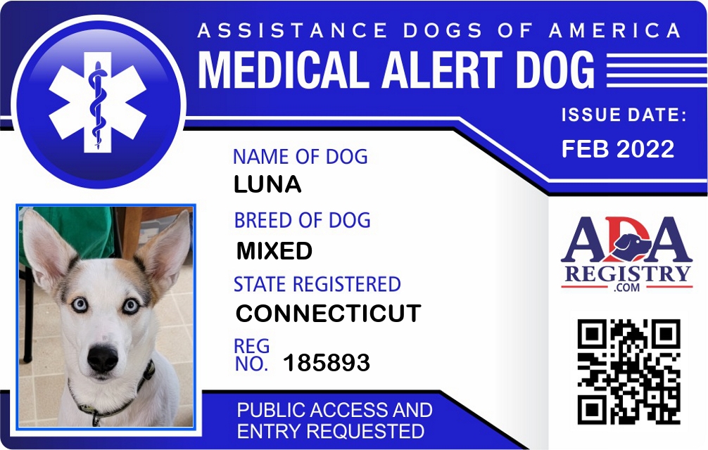 Medical Alert Dog Registration for Luna