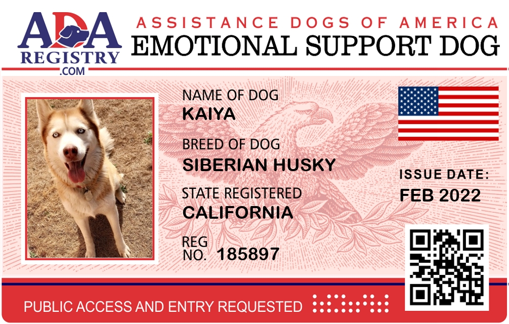 Emotional Support Dog Registration for Kaiya
