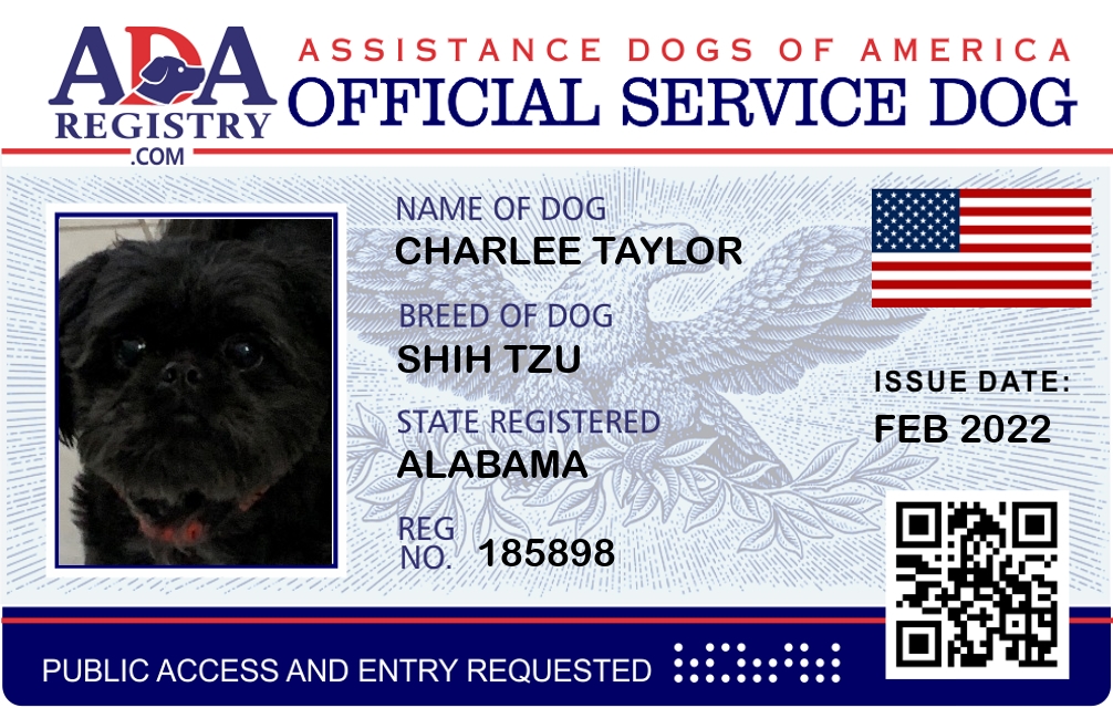 Service Dog Registration for Charlee Taylor