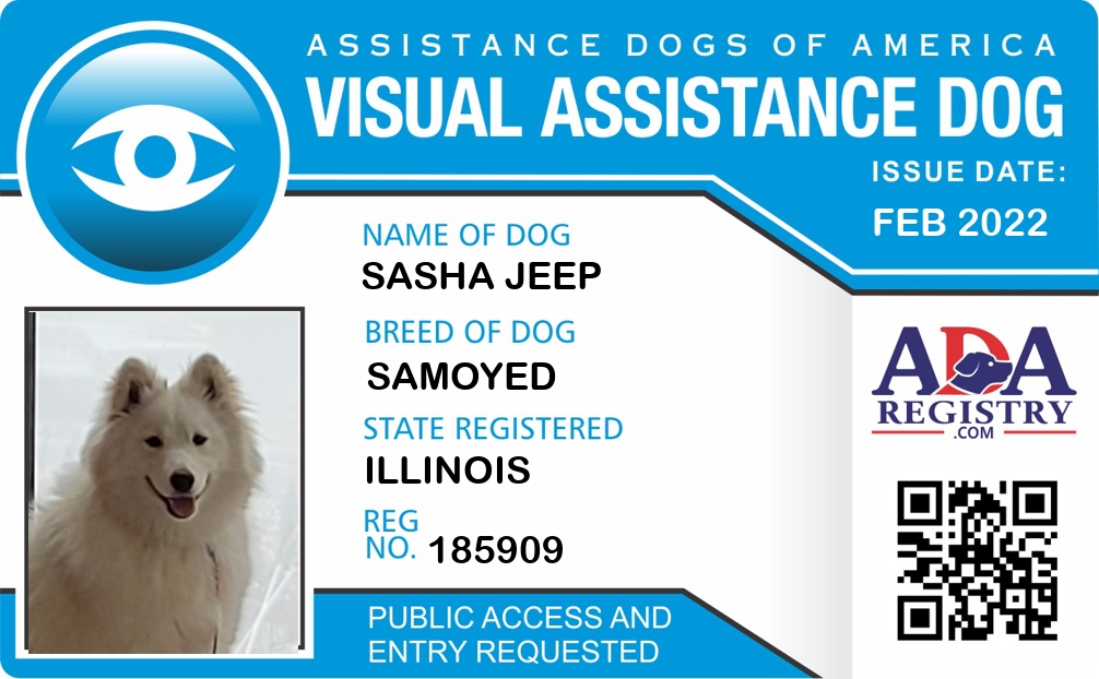 Visual Assistance Dog Registration for Sasha Jeep