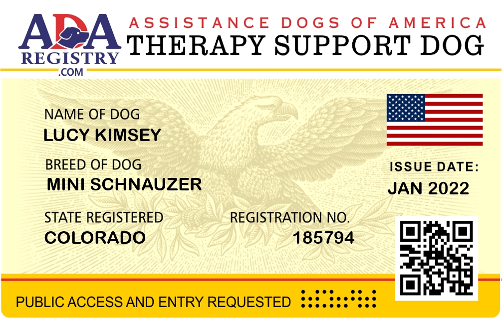 Therapy Dog Registration for Lucy Kimsey