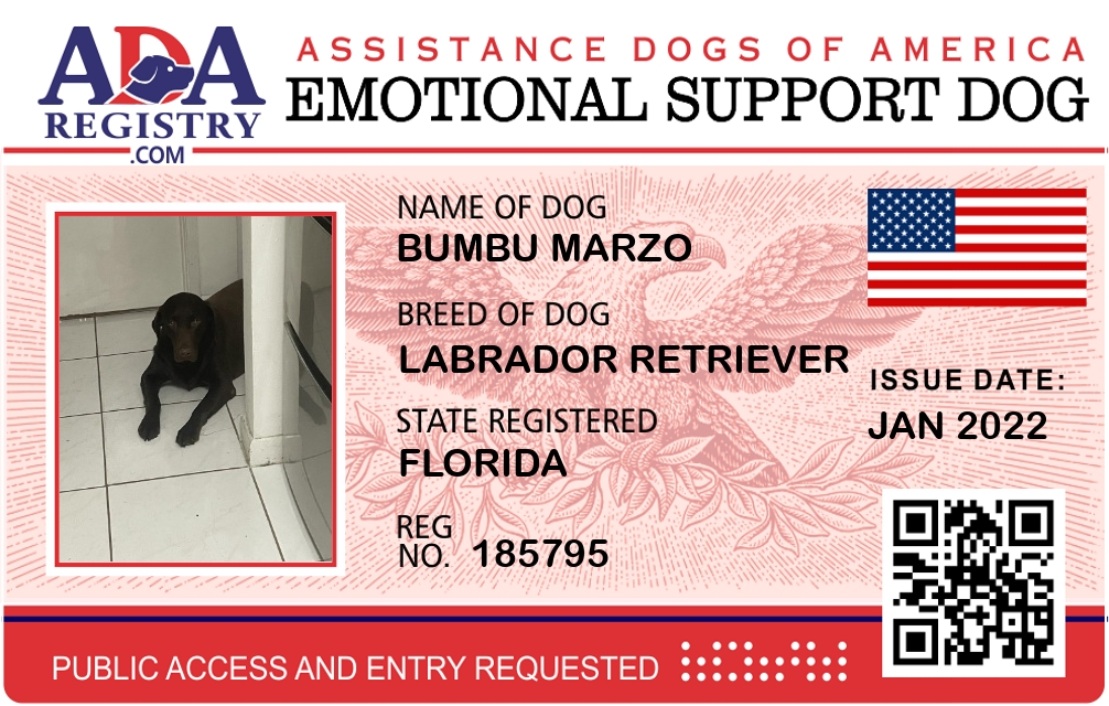 Emotional Support Dog Registration for Bumbu Marzo