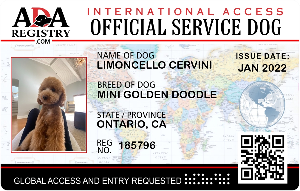 Service Dog Registration for Limoncello Cervini