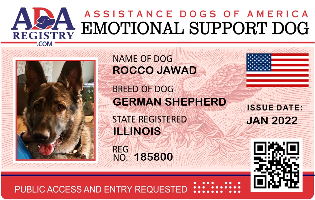 Emotional Support Dog Registration for Rocco Jawad