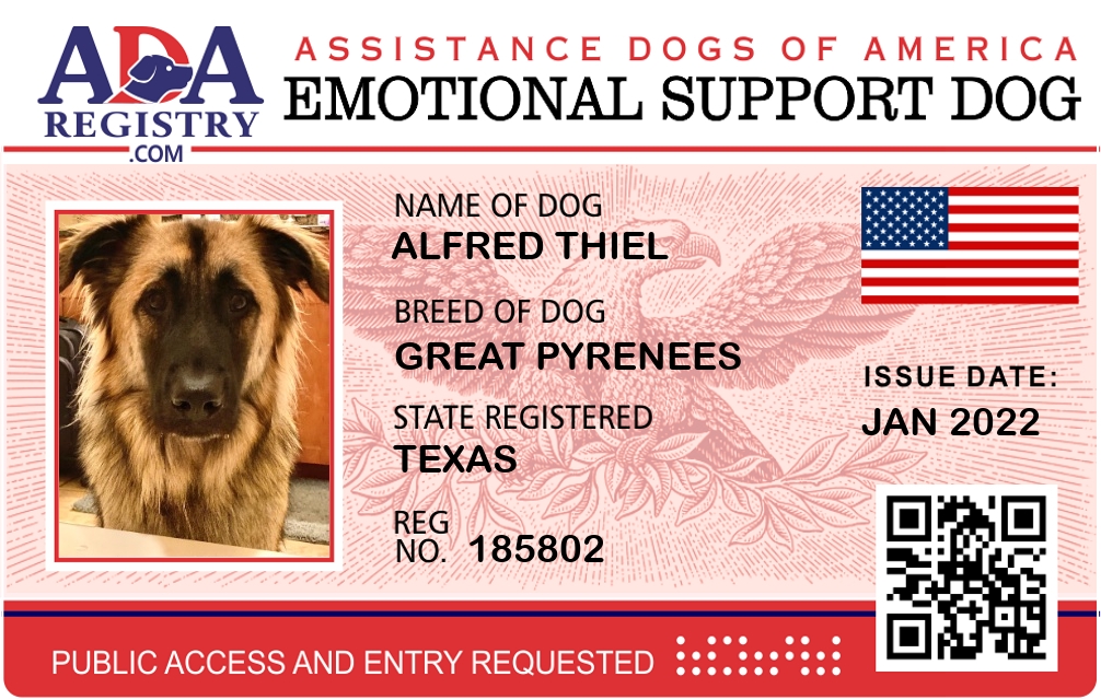 Emotional Support Dog Registration for Alfred Thiel