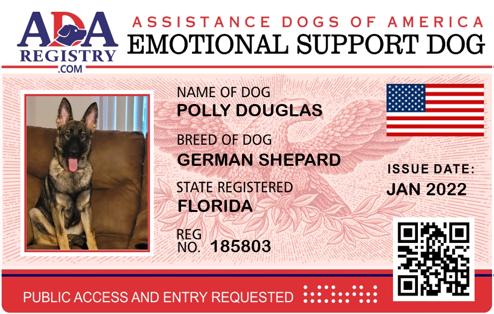 Emotional Support Dog Registration for Polly Douglas