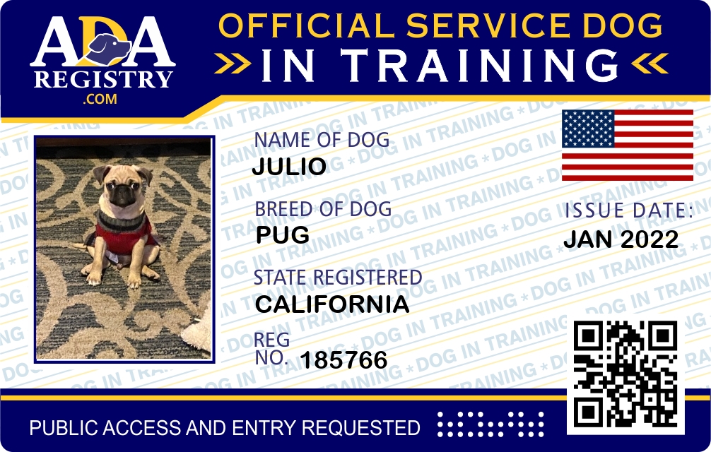 Service Dog In Training Registration for Julio
