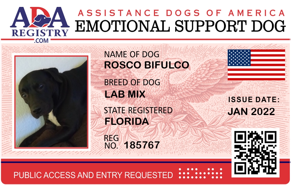 Emotional Support Dog Registration for Rosco Bifulco