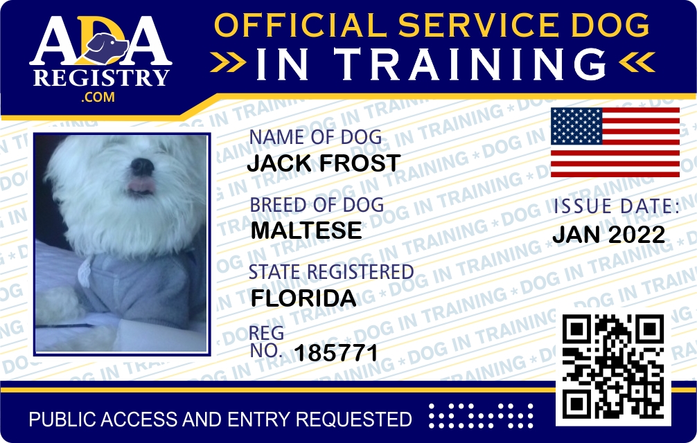 Service Dog In Training Registration for Jack Frost