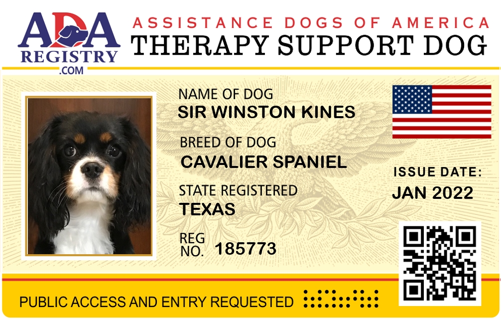 Therapy Dog Registration for Sir Winston Kines