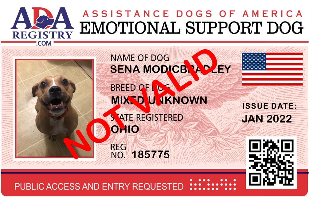 Emotional Support Dog Registration for SENA MODICBRADLEY