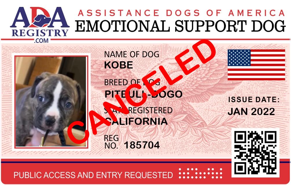 Emotional Support Dog Registration for Kobe