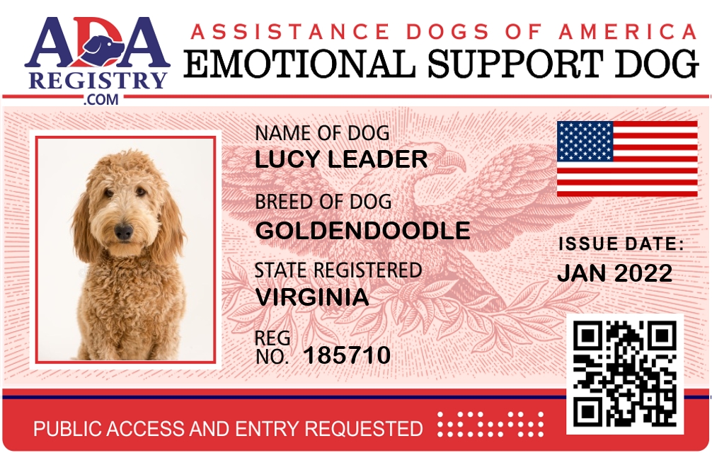 Emotional Support Dog Registration for Lucy Leader