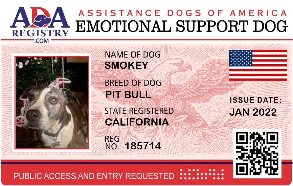 Emotional Support Dog Registration for Smokey