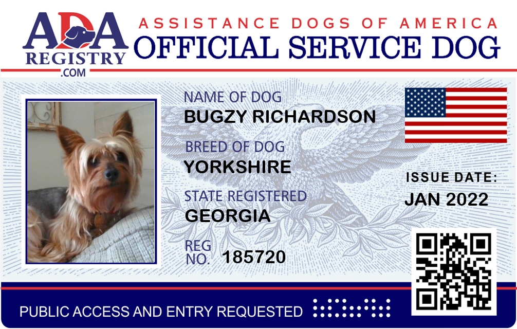 Service Dog Registration for Bugzy Richardson