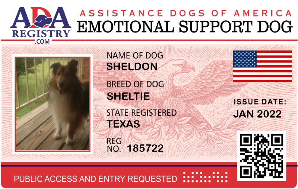 Emotional Support Dog Registration for Sheldon