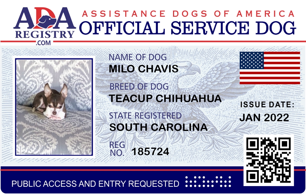 Service Dog Registration for Milo Chavis