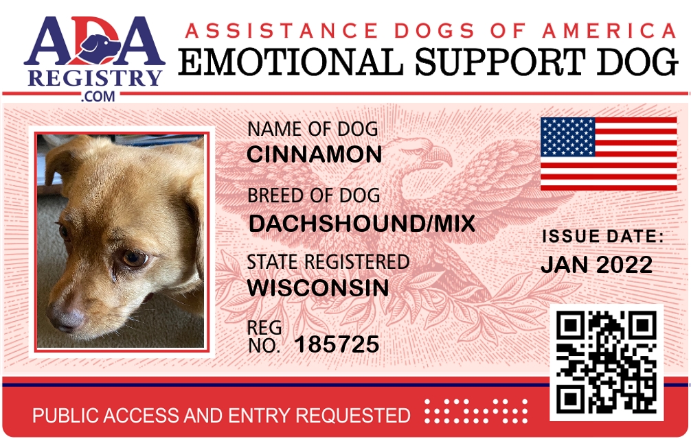 Emotional Support Dog Registration for Cinnamon