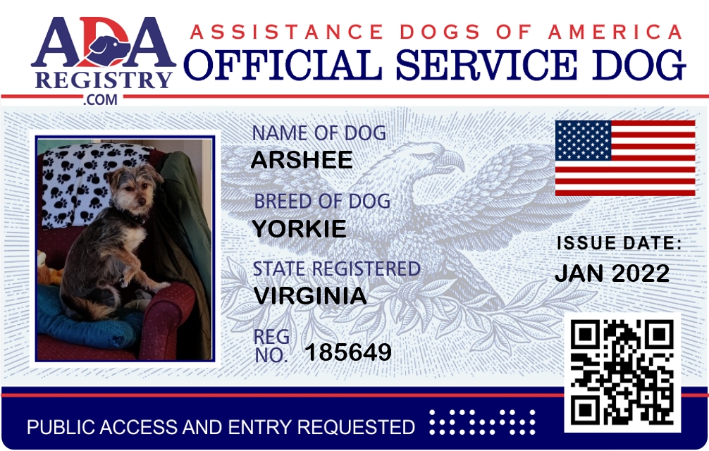 Service Dog Registration for Arshee
