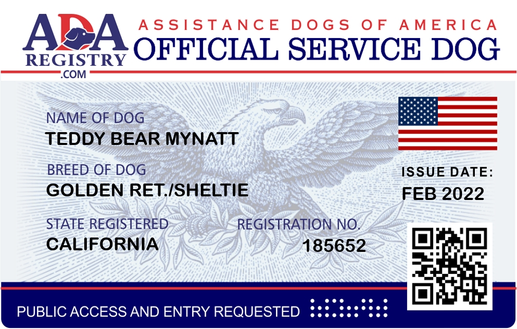 Service Dog Registration for Teddy Bear Mynatt