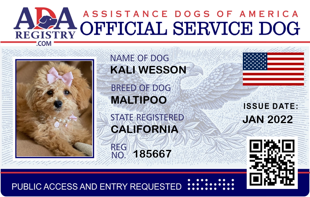 Service Dog Registration for Kali Wesson