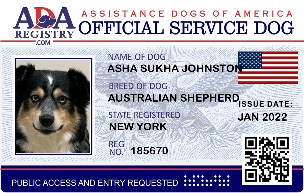 Service Dog Registration for Asha Sukha Johnston