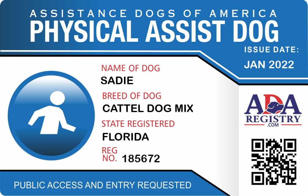 Physical Assistance Dog Registration for Sadie