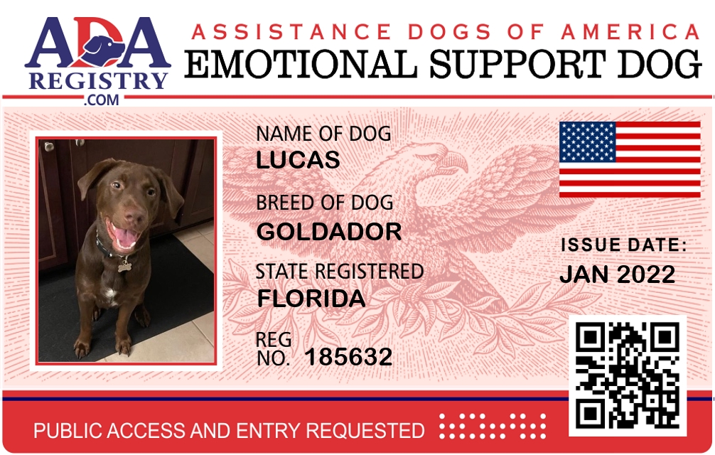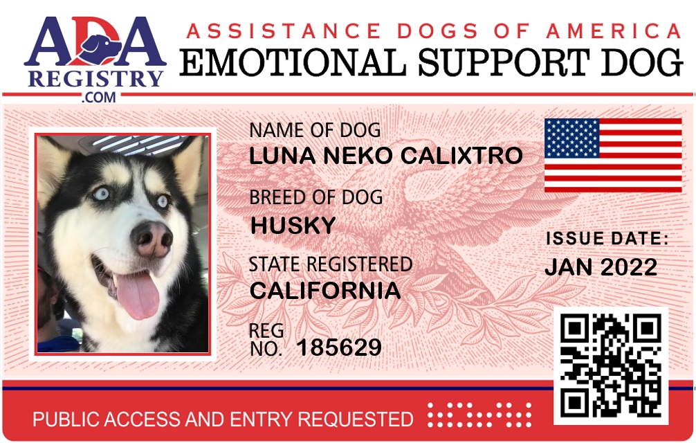 Emotional Support Dog Registration for Luna Neko Calixtro