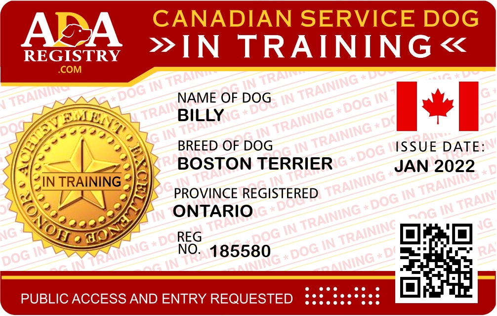 Service Dog In Training Registration for Billy