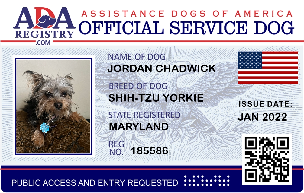 Service Dog Registration for Jordan Chadwick