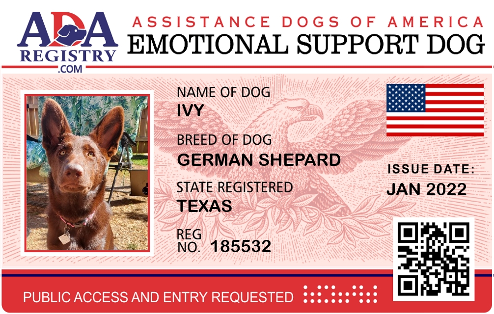 Emotional Support Dog Registration for Ivy