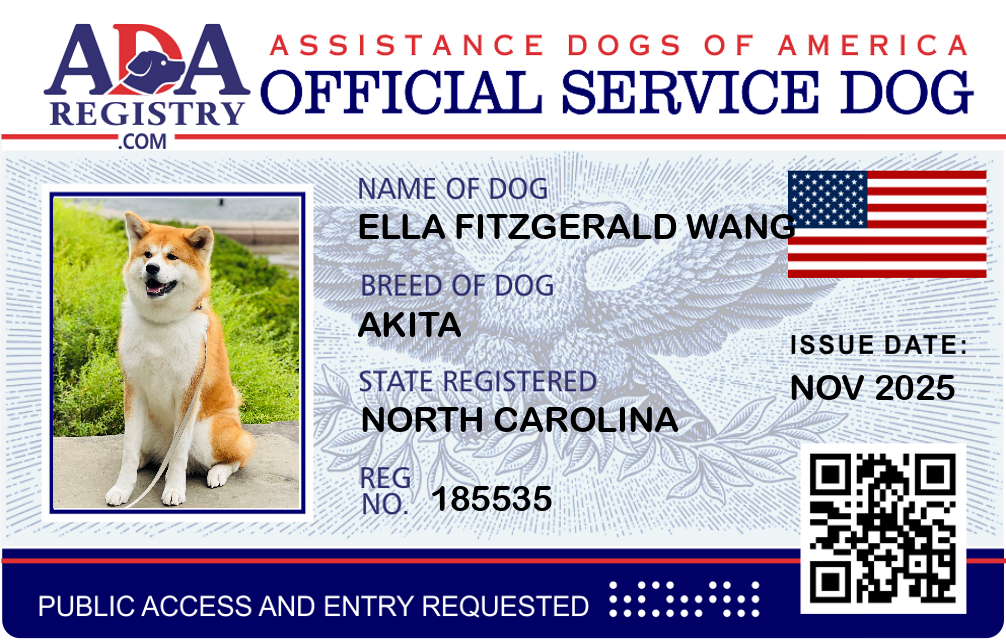 Service Dog Registration for Ella Fitzgerald Wang