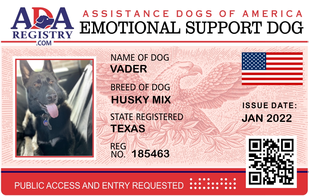 Emotional Support Dog Registration for Vader